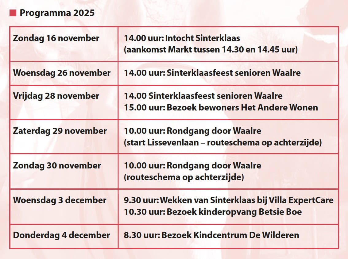 Sint bezoekt ook de peuterspeelzalen, de kinderopvang, de basisschool, het kinderhotel Mappa Mondo en het verzorgingshuis “de Hoevenakkers”.